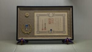 永塚博之理事長(母子生活支援施設むつみ荘の統括施設長)が令和7年11月19日に賜りました「藍綬褒章と賞状」を額装いたしました。心よりのお礼の気持ちを込めて、みなさまにご覧いただければ幸いです。