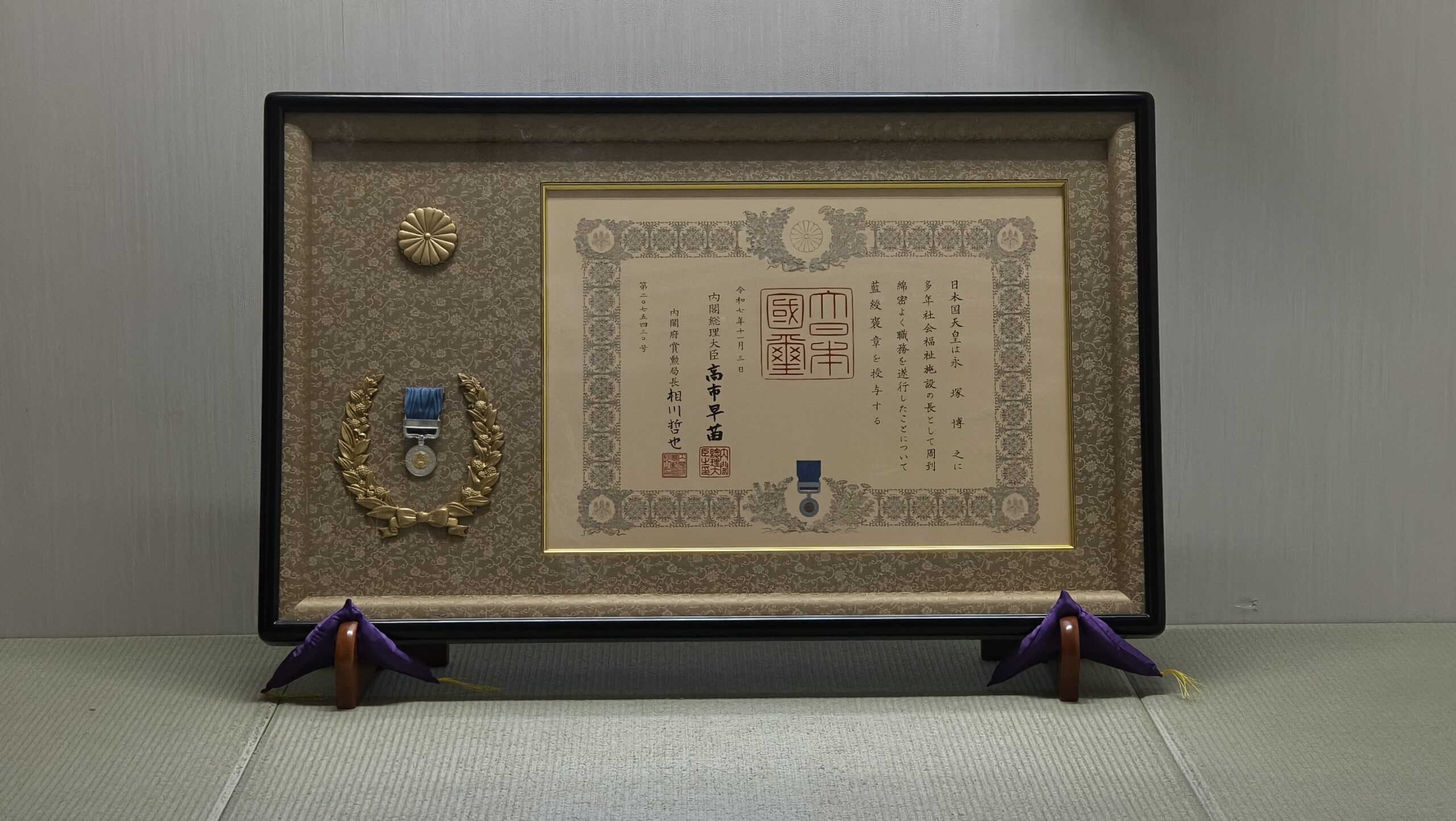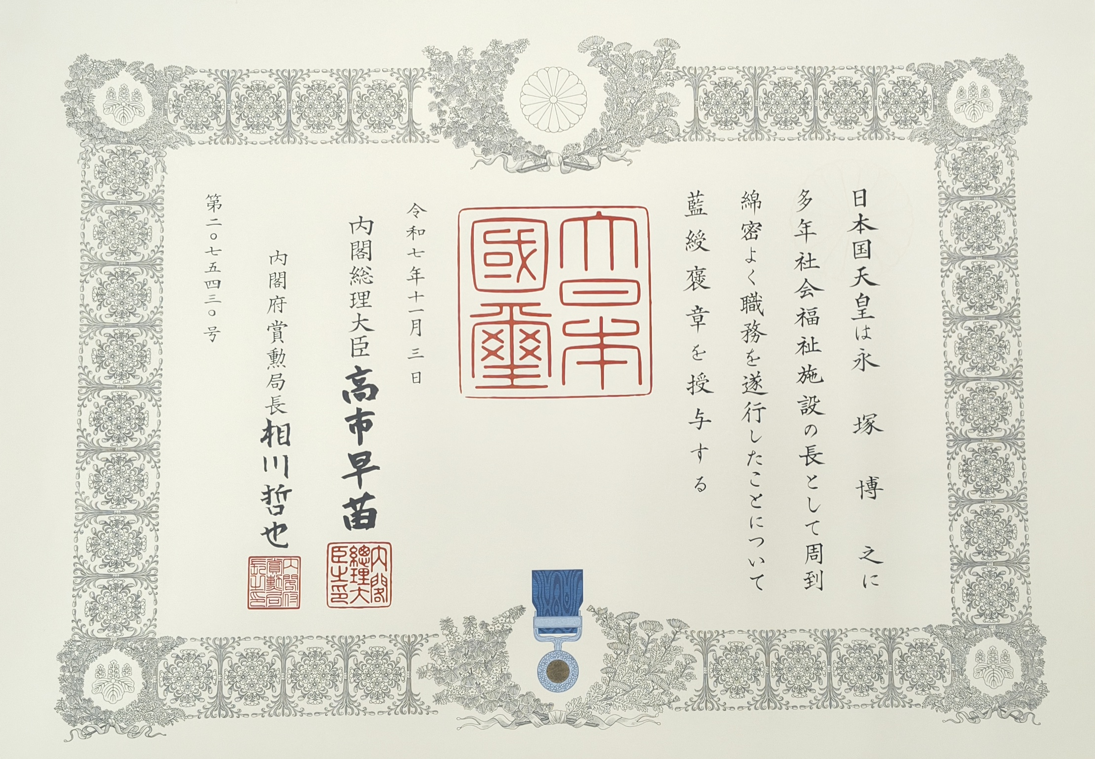 - 【母子生活支援施設むつみ荘統括施設長】令和7年秋の褒章「藍綬褒章」拝受(令和7年11月19日)